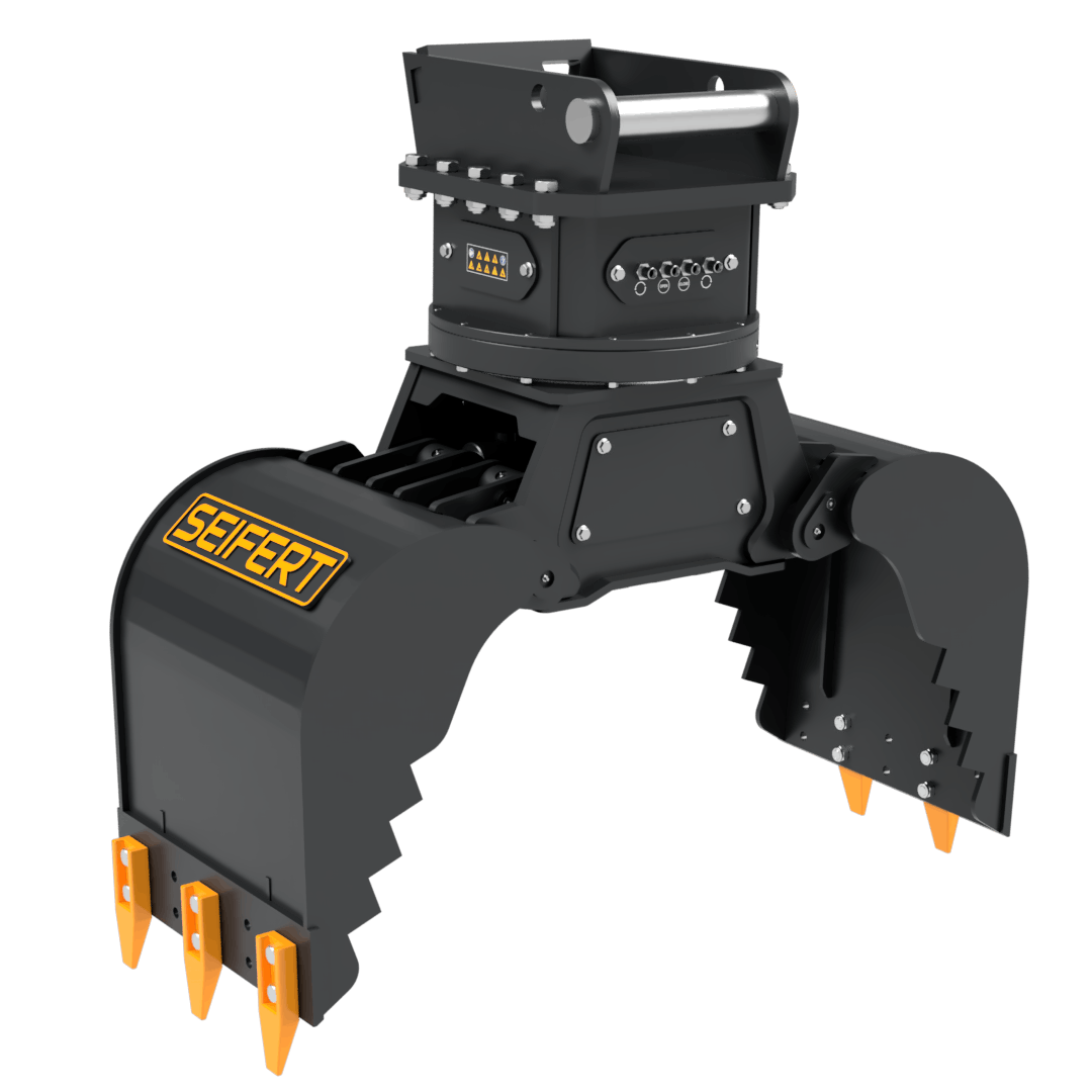 SEIFERT Sortiergreifer SSG740: Das Kraftpaket für Ihren Bagger Der SSG740 erzielt eine, in der Gewichtsklasse von 10-15 Tonnen, überdurchschnittliche Schließkraft von 30,9 kN - bei einem Eigengewicht von 740 kg. Die Schalenbreite beträgt 70 Zentimeter, die Öffnungsweite 163 Zentimeter. Bei Qualität und Zuverlässigkeit spielt der SSG740 in der selben Liga wie seine Brüder. Wir bei SEIFERT haben bei der Entwicklung unseren Fokus auf maximale Belastbarkeit gelegt. Für die Greifer der SEIFERT SSG-Baureihe sind, neben den standardmäßig im Lieferumfang enthaltenen Greiferzähnen, optionale Anbauschneiden erhältlich. Als Wechselschneiden mit 2 Verschleißkanten oder auch als gezahnte Schneiden für maximalen Halt. Alle SEIFERT SSG-Sortiergreifer verfügen serienmäßig über ein Lasthalteventil, um gegriffene Objekte sicher zu halten und vor dem Herausrutschen zu schützen. Die Greifer der SEIFERT SSG-Baureihe besitzen einen besonders robusten, wartungsfreundlichen Aufbau und glänzen mit einem hervorragenden Preis-Leistungs-Verhältnis, Zuverlässigkeit sowie Langlebigkeit. Sie möchten wissen, welcher SSG-Sortiergreifer mit welcher Aufnahme die beste Wahl für Sie ist? Nehmen Sie Kontakt zu uns auf. Wir beraten Sie gern!
